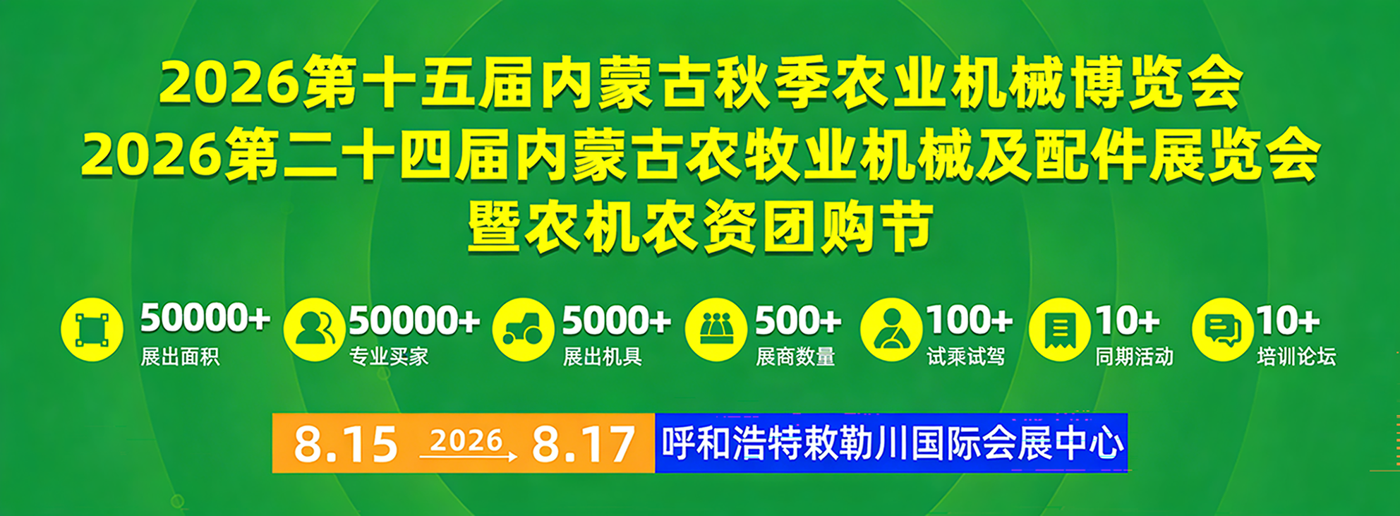 为深入贯彻《“十四五”全国农业机械化发展规划》《内蒙古自治 区“十四五”推进农牧业农村牧区现代化发展规划》及 2025 年中央一 号文件关于"农业新质生产力”的战略部署,全面落实《国务院关于推 动大规模设备更新和消费品以旧换新行动方案》,紧扣“全程全面、高 质高效”发展目标,推动农牧业机械化与智能化、绿色化深度融合, 助力农畜产品生产基地优质高效转型。由内蒙古农牧业机械工业协会 主办的“2026 第十五届内蒙古秋季农业机械博览会”与内蒙古合作社联盟主办的“2026 第二十四届内蒙古农牧业机械及配件展览会暨农机团购节"于 2026 年 8 月 15—17 日在呼和浩特敕勒川国际会展中 心盛大举办。本届展会以“智联草原 械动未来”为主题,聚焦“新技 术、新场景、新生态”,打造集装备展示、技术交流、商贸合作、政 策解读于一体的全产业链平台,诚邀行业同仁共赴盛会,诚邀各盟市 农机推广部门科技人员、农业/农机/养殖专业合作社、种养殖大户、 牧场、家庭农场等经营主体观摩指导。